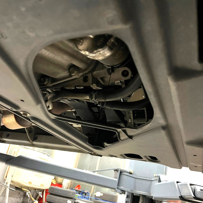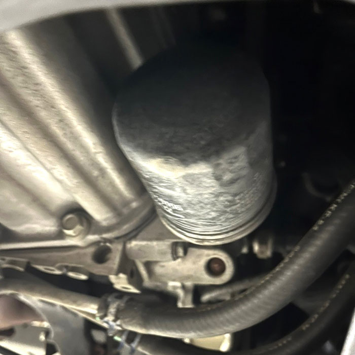 オイルパン下部のドレインボルトからオイルを抜いた後、エンジン前方や側面に取り付けられているオイルエレメントを探します。