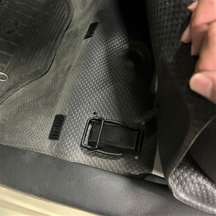 バッテリー交換が終わったら、助手席シートを元に戻してフックを掛け直します。