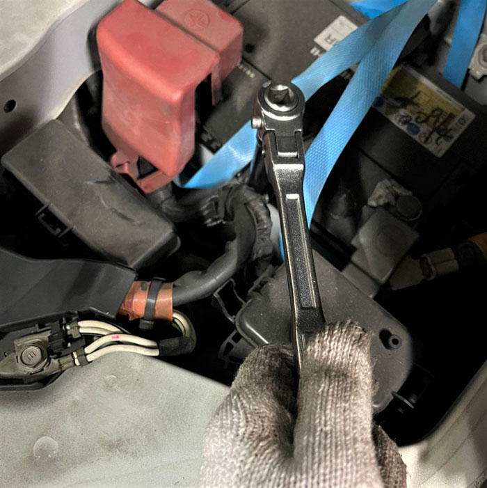 ・ラチェットを使うと、端子やステーのナットを手早く緩められる。