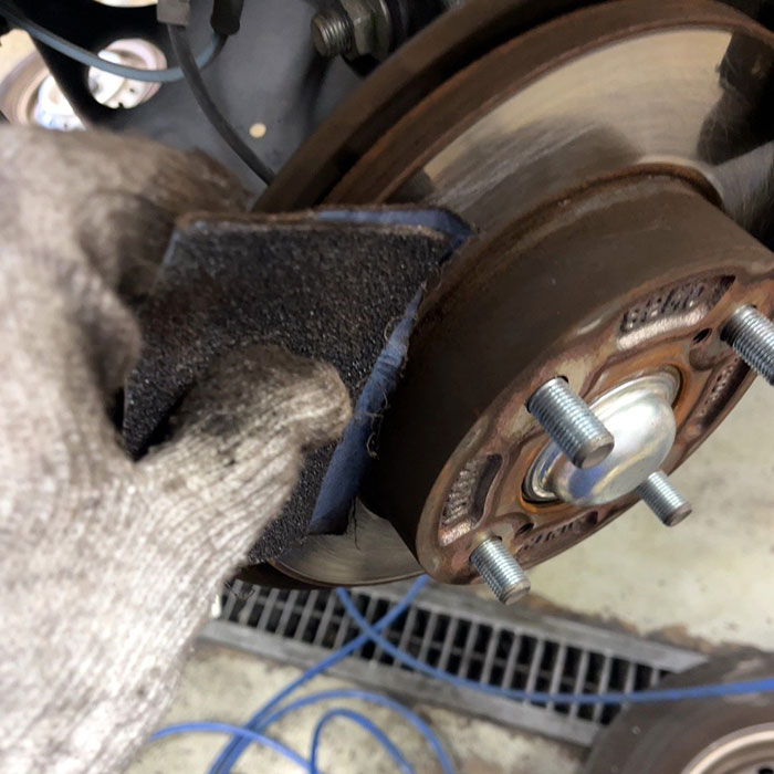 ・パッドもヤスリで軽く表面をならすと「当たり」が出やすくなり、鳴き防止につながります。