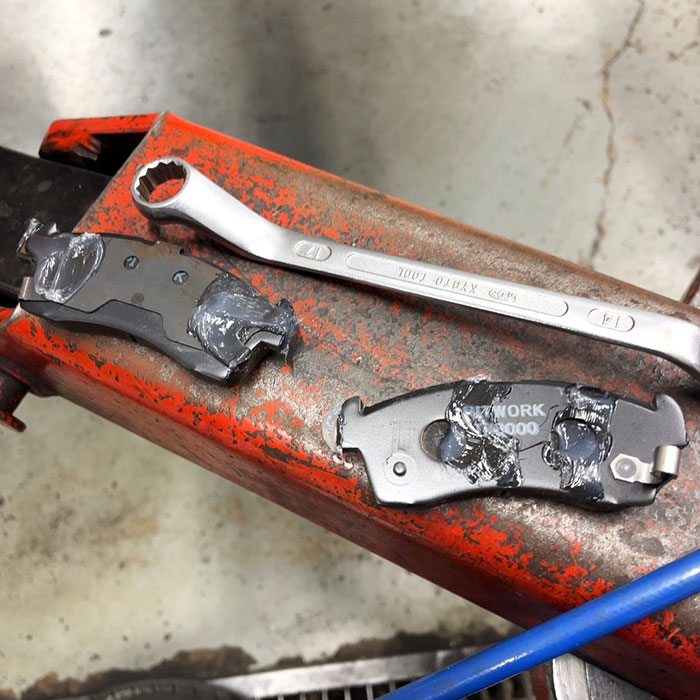 必要な工具(14mmメガネ、ピストン戻し、パッドグリス、ヤスリ2枚など)を用意すれば、手順もシンプルで自分で作業できる可能性が高いでしょう。