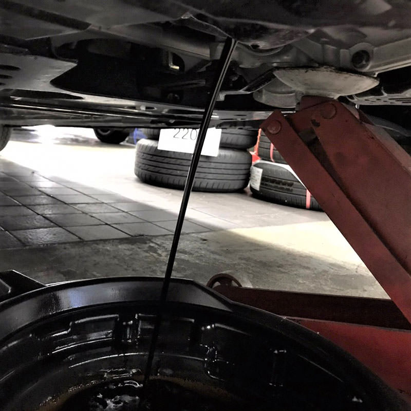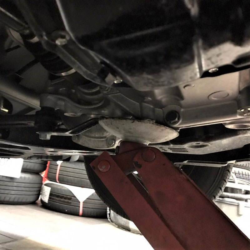 まずは車をジャッキアップまたはリフトアップして、下回りにアクセスしやすい状態を作ります。