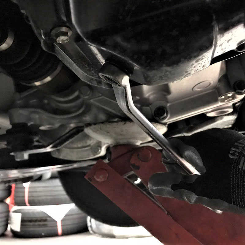1.車をジャッキアップし、オイルパンを確認
