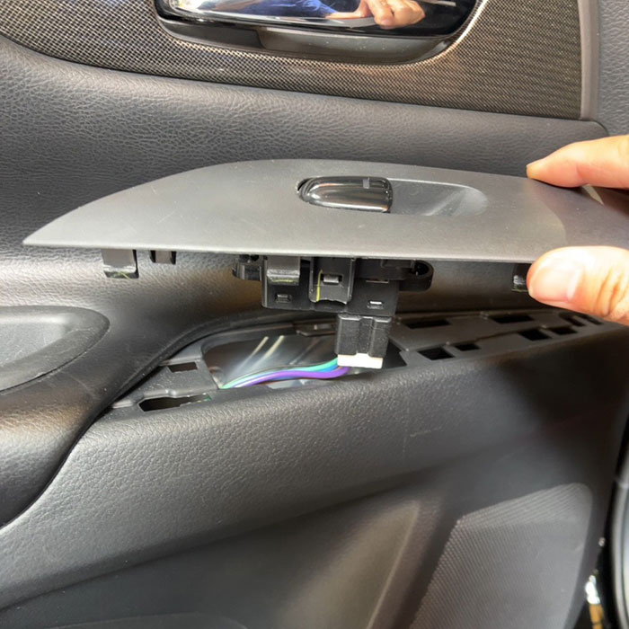 - スイッチパネルの配線を再び取り付け、パネルを爪で固定