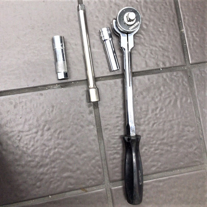 プラグレンチは先端にゴムやマグネットが付いたタイプを使うと、取り外したプラグが落ちにくく、スムーズに交換できます。