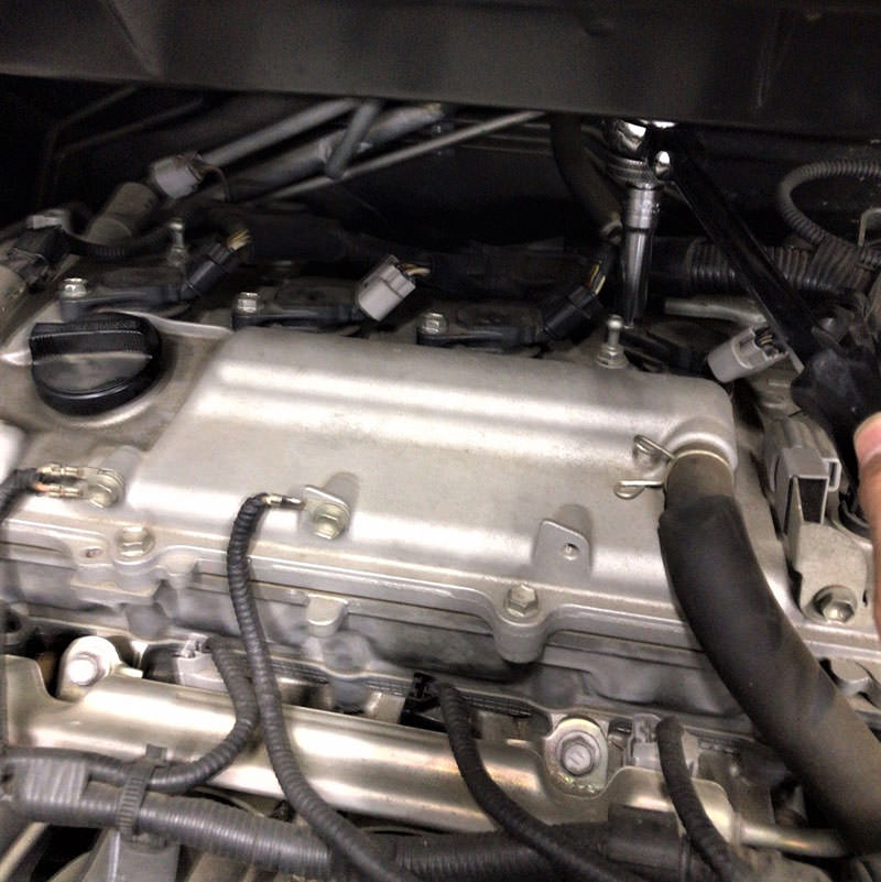 イグニッションコイルは10mmボルト(またはネジ)でエンジン上部に固定されているため、ラチェットと10mmソケットを使い、反時計回りに緩めます。