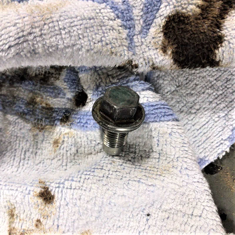 オイルがほぼ抜けたらボルトを時計回りに締め付けます。