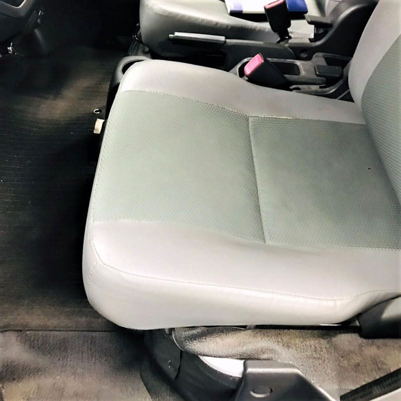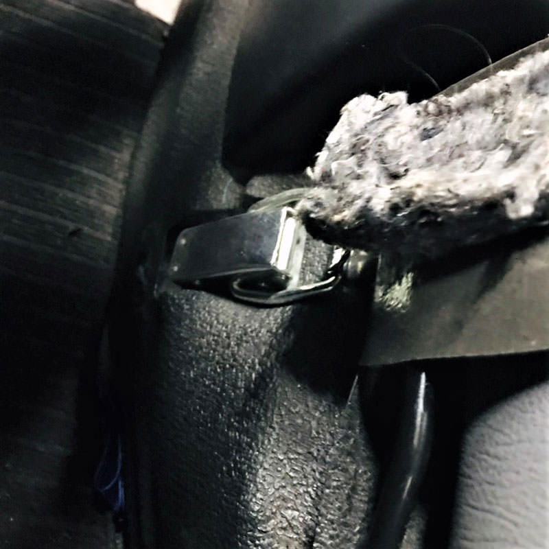 1.左右のフックを外して助手席シートを跳ね上げる